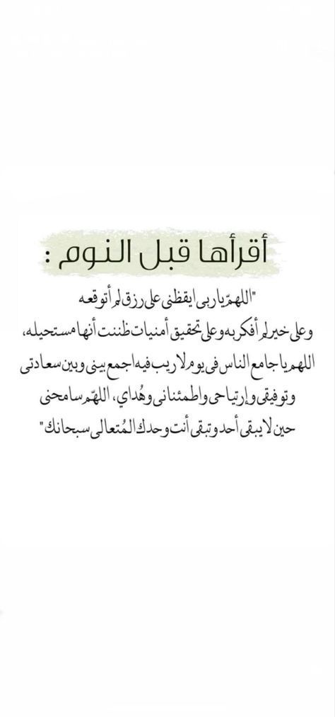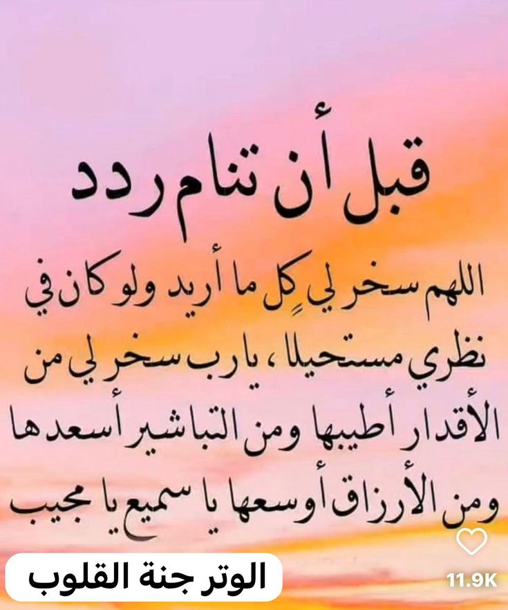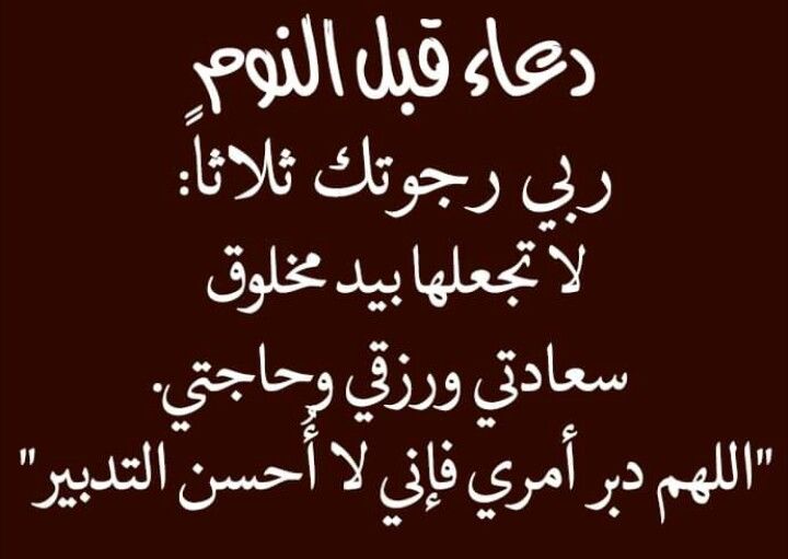 • ” اللهم غارت النجوم، وهدأت العيون، وأنت حي قيوم، لا تأخذك سنة ولا نوم يا حي يا قيوم، أهدىء ليلي وأنم عينى.