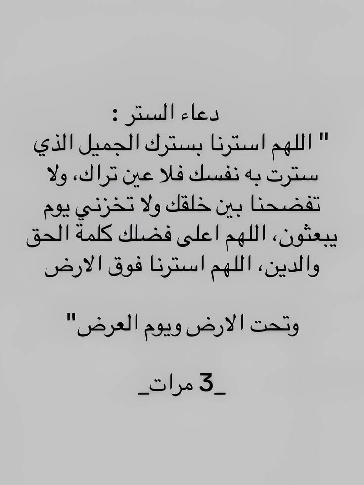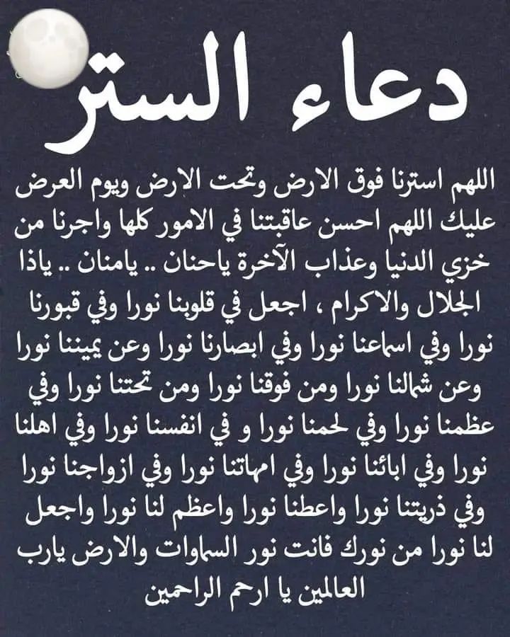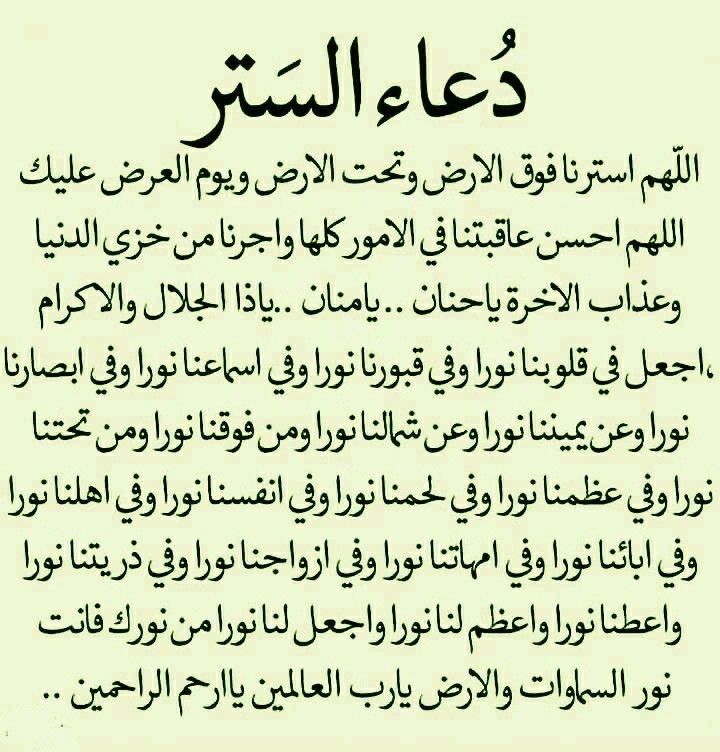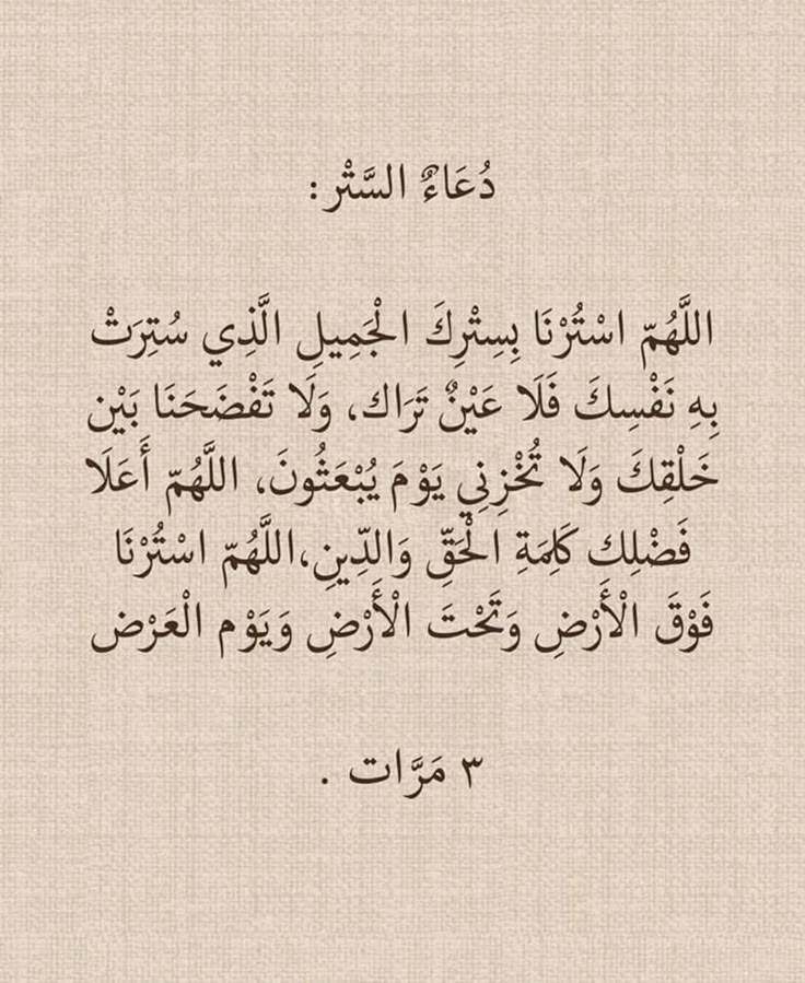 - اللهم إنا نسألك سترك، فكما سترتنا في الدنيا استرنا يوم البعث ويوم العرض يا الله.
