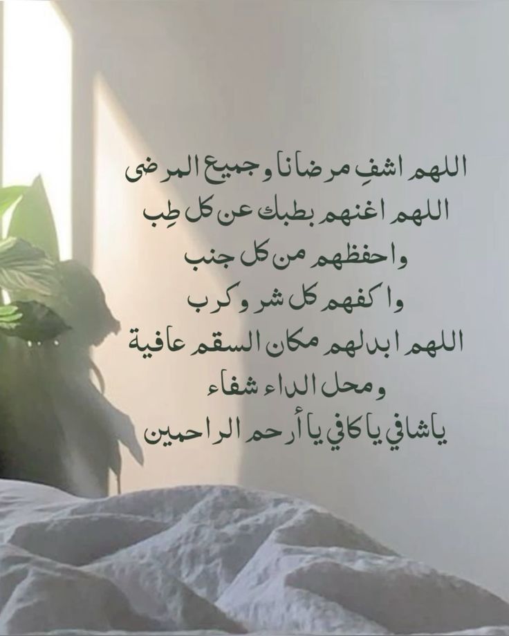 - اللهم ألبس مريضنا ثوب الصحة والعافية، اللهم آمين