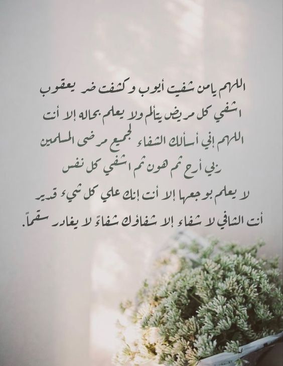 - اللهم يا من شفيت أيوب وكشفت ضر يعقوب اشف كل مريض يتألم ولا يتكلم ولا يعلم بحاله إلا أنت.