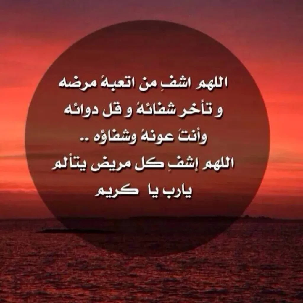 - اللهُم يَا من تعيد للمريض صحته ويا من تستجيب دعاء اليائسين اشفِ كل مريض شفاءً لا يغادر سقماً يارب.