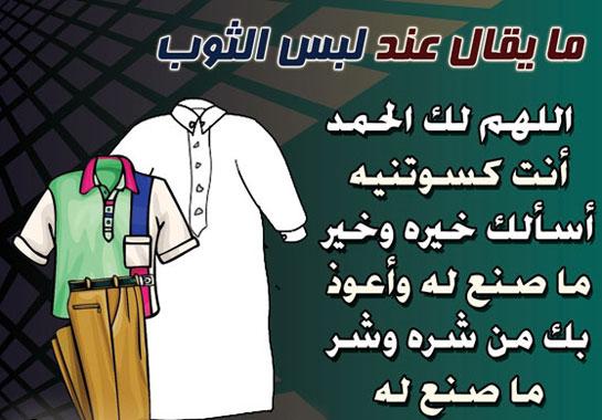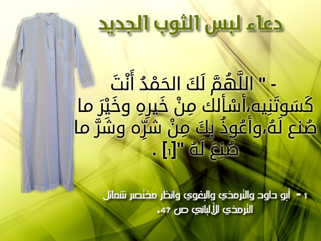 • اللهم لك الحمد على نعمتك، اللهم اجعل هذا الثوب خيرًا لي في الدنيا والآخرة.