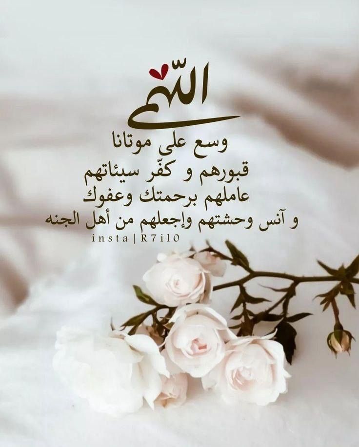 - اللهم اجعل موتانا من أسعد السعداء في قبورهم.اللهم أرزقهم الفسحة والضياء وانسهم بالقرب إليك.