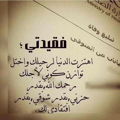 دعاء” اللهم أنزل على أهله الصبر والسلوان، وامنحهم الرضا بقضائك، وثبّتهم على القول الثابت، وكن لهم معينًا وسندًا في مصابهم”